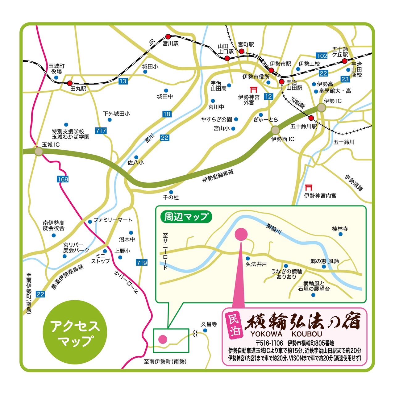 伊勢神宮(外宮・内宮)から車で約20km。